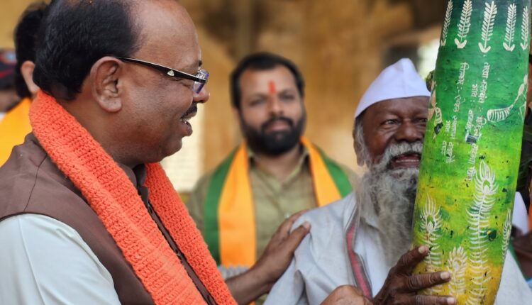 पालघर दि २७(प्रतिनिधी)- जव्हार तालुक्यातील आदिवासी वस्ती असलेल्या काशिवली या गावी आज, भाजपा प्रदेशाध्यक्ष चंद्रशेखर बावनकुळे यांनी प्रसिद्ध तारपावादक भिकल्या धिंडा यांची भेट घेतली. या भेटीने आदिवासी संस्कृती, परंपरा आणि संगीत यासंदर्भातील चर्चा झालीच शिवाय, मोदी सरकारने आदिवासी समाजाला मुख्य प्रवाहात आणण्यासाठी केलेल्या प्रयत्नाची मांडणी सुद्धा धिंडा यांनी केली.