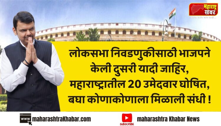 लोकसभा निवडणुकीसाठी भाजपने केली दुसरी यादी जाहिर,महाराष्ट्रातील 20 उमेदवार घोषित,बघा कोणाकोणाला मिळाली संधी !