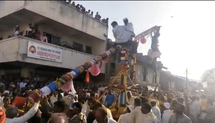 पुणे दि ६(प्रतिनिधी) – पुण्यातील जुन्नरमधून एक मोठी बातमी समोर आली आहे. जुन्नर तालुक्यातील पारुंडे येथील ब्रम्हनाथ यात्रेचं आकर्षण असणारं बगाड अचानक मधोमध तुटलं आणि मानकरी थेट आठ-दहा फुटांवरून खाली कोसळले.सुदैवाने सर्वजन सुखरूप आहेत.