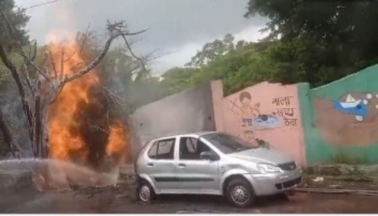 कार जळून खाक, परिसरातील गॅस आणि वीज पुरवठा बंद, नागरिकांमध्ये भीतीचे वातावरण