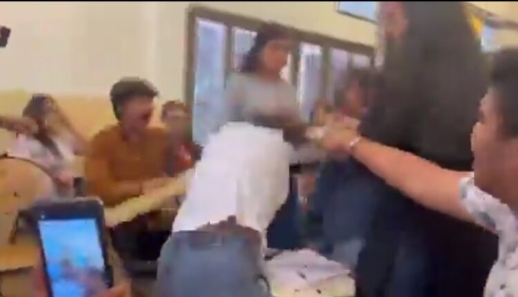 वर्गातील मुलींची एकमेकींचे केस ओढत जोरदार हाणामारी
