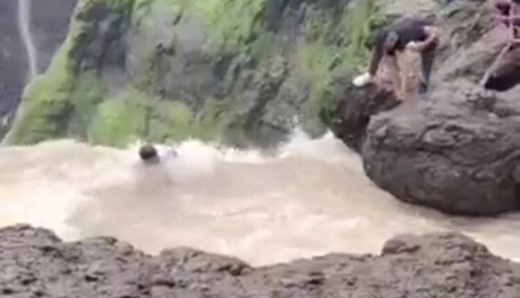 हुल्लडबाजी करताना पाय घसरला आणि मृत्यूचा दारात अडकला, असा वाचवला पर्यटकाचा जीव, थरारक व्हिडिओ व्हायरल