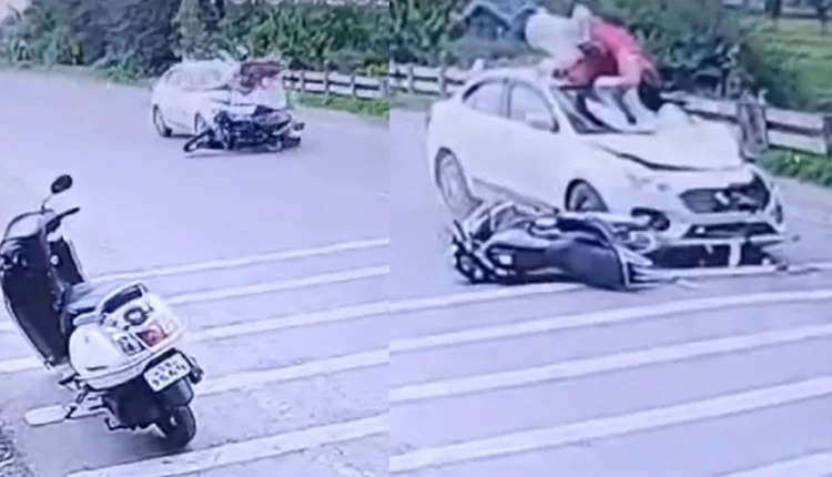 अतिशय कमी वर्दळीच्या रस्त्यावरून जाणारी एक बाईक, त्यावर बसलेलं जोडपं आणि तेवढ्यात भरधाव वेगाने मागून आलेली कार. समोर बाईक दिसत असूनही कारचालकाने ब्रेक वगैरे न लावता गाडी तशीच पुढे दामटली आणि त्या बाईकला थेट धडक दिली. ती ठोकर एवढी जबरदस्त होती की, बाईकवरील दोघेही एखाद्या बाहुलीप्रमाणे वर उडाले, गाडीच्या टपावर आपटले आणि धाडकन रस्त्यावर आदळले. त्याचं दैवं बलवत्तर म्हणूनच या भीषण अपघातातून ते बचावले असले तरी बऱ्याच जखमा झाल्या आहेत . काळजाचा थरकाप उडवणाऱ्या या अपघाताचा व्हिडीओ देखील समोर आला आहे.