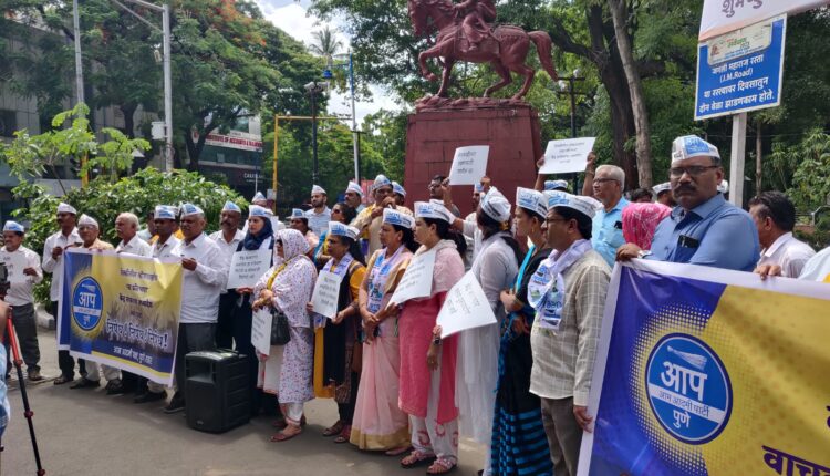 दिल्लीतील मतदारांचा अनादर करणाऱ्या मोदी सरकारविरोधात पुण्यात आपची निदर्शने, दडपशाहीचा आरोप