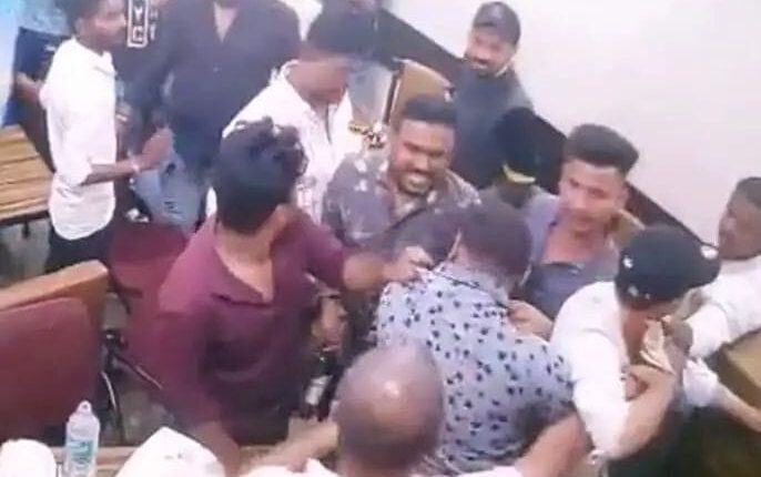 दीपक कोल्हे असे मारहाण झालेल्या रेल्वे पोलिसाचे नाव आहे.या राड्याचा व्हिडिओ व्हायरल झाला आहे. मिळालेल्या माहितीनुसार ठाणे रेल्वे पोलीस दलात असलेले कोल्हे काही दिवसांपासून सुट्टीवर असून घटनेच्या दिवशी ते रात्री मित्रासोबत क्वालिटी पंजाब हॉटेलमध्ये बसलेले होते. त्याचवेळी कोल्हेंच्या बाजूच्याच टेबलवर काही तरुण देखील बसलेले होते. रात्री एक वाजण्याच्या सुमारास त्यांच्यात शाब्दिक वाद झाला. या वादातून त्या तरुणांनी कोल्हे आणि त्यांच्या मित्राला बेदम मारहाण केली.या मारहाणीत हाॅटेलच्या टेबल, खुर्च्या यासह बियरच्या बाटल्या याचीही तोडफोड करण्यात आली. या हल्ल्यात कोल्हे आणि त्यांचा मित्र जखमी झाला आहे. पण नेमक्या कोणत्या मुद्द्यावर शाब्दिक वाद झाला याचे उत्तर मिळू शकले नाही. याचा व्हिडिओ व्हायरल झाला आहे. यात काही क्षणात हाॅटेलचे रूपच बदलून गेल्याचे दिसत आहे.