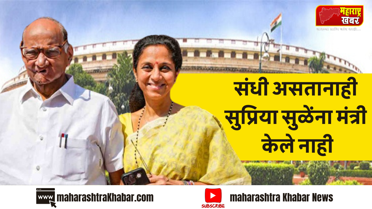 लोकसभा निवडणुकीची तयारी सर्वच पक्षांमध्ये सुरु आहे. राष्ट्रवादी काँग्रेसचे दोन्ही गट बारामतीमध्ये आमने-सामने येण्याची शक्यता आहे. बारामतीमधील लढतीकडे संपूर्ण महाराष्ट्राचे लक्ष लागले आहे. अशातच राष्ट्रवादी काँग्रेस शरदचंद्र पवार पक्षाचे अध्यक्ष शरद पवार यांनी प्रथमच सुप्रिया सुळे यांच्या मंत्रिपदाबद्दल वक्तव्य केले आहे. सुप्रियाला मंत्री करण्याची संधी असतानाही मी कधीही तसा विचार केला नाही, असं शरद पवार म्हणाले. बारामती येथे जनतेसोबतच्या संवादात त्यांनी हे वक्तव्य केले आहे. राष्ट्रवादी काँग्रेसमध्ये फूट पडल्यानंतर बारामती लोकसभेत राष्ट्रवादी काँग्रेस अजित पवार गट आणि शरद पवार गट यांचे दोन स्वतंत्र उमेदवार असणार आहेत. दोन्ही गटांकडून कॉर्नर बैठकांपासून जाहीर कार्यक्रमांची रेलचेल सुरु आहे.