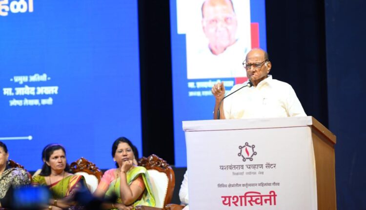 यशवंतराव चव्हाण सेंटरच्या वतीने कृषी, साहित्य, उद्योजकता, सामाजिक, क्रीडा प्रशिक्षण आणि पत्रकारिता क्षेत्रांत उल्लेखनीय कार्य करणाऱ्या राज्यातील सहा यशस्विनींना आज प्रख्यात लेखक आणि कवी जावेद अख्तर आणि अभिनेत्री शबाना आझमी यांच्या हस्ते यशस्विनी सन्मान पुरस्कार प्रदान करण्यात आला. याप्रसंगी ते बोलत होते. पवार यांच्या अध्यक्षतेखाली झालेल्या या कार्यक्रमात सांगली येथील डॉ. सुनिता बोर्डे यांना ‘यशस्विनी साहित्य सन्मान’, सातारा येथील भारती नागेश स्वामी यांना ‘यशस्विनी कृषी सन्मान’, पुणे येथील लक्ष्मी नारायणन यांना ‘यशस्विनी सामाजिक सन्मान’, ठाणे येथील शर्मिला प्रभाकर कलगुटकर यांना ‘यशस्विनी पत्रकारिता सन्मान’, नांदेड येथील राजश्री पाटील यांना ‘यशस्विनी उद्योजकता सन्मान’ तर नाशिक येथील शैलजा जैनेंद्रकुमार जैन यांना ‘यशस्विनी क्रीडा प्रशिक्षक सन्मान’ या पुरस्कारांनी गौरविण्यात आले. सन्मानपत्र, यशवंतराव चव्हाण यांची प्रतिकृती असलेले सन्मानचिन्ह आणि २५ हजार रुपयांचा धनादेश असे या पुरस्काराचे स्वरूप आहे.