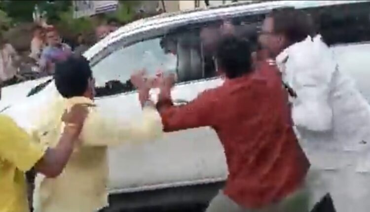 अमरावती दि २५(प्रतिनिधी)- शिंदे गटाचे आमदार संतोष बांगर आज अमरावती जिल्ह्यातील अंजनगाव सुर्जी येथे आले होते.यावेळी संतोष बांगर यांच्या गाडीवर संतप्त शिवसैनिकांकडून हल्ला करण्याचा प्रयत्न केला. यावेळी शिवसैनिकांनी ५० खोके एकदम ओके अशा घोषणादेखील दिल्या. बांगर यांच्या गाडीच्या काचेवर शिवसैनिकांनी चांगलाच चोप दिला आहे.