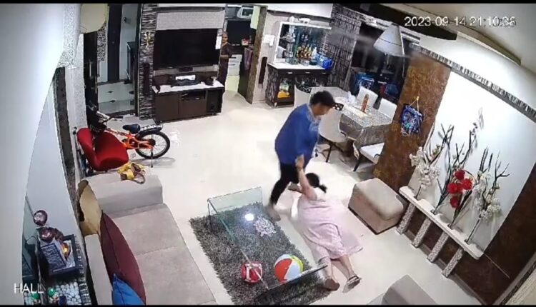 ठाणेच्या कोपरीतील सिद्धार्थनगर परिसरातील एका घरात महिलेने आपल्या सासूला मारहाण केली आहे. व्हायरल व्हिडिओत दिसत आहे की, सासू हॉलमधील सोफ्यावर बसली असताना सून तिला घरातून निघून जा म्हणून वारंवार म्हणत आहे. प्रत्युत्तरदाखल वृद्ध महिलाही सूनेला शिवीगाळ करताना दिसत आहे. त्यामुळे सुनेचा राग अनावर होतो आणि ती सासूला जमीनीवर खेचते, यावेळी सुनेने सासूला मारहाण देखील केली आहे. धक्कादायक गोष्ट म्हणजे हे अमानुष कृत्य सुरु असताना त्या घरात या दोन महिलांशिवाय अजून एक महिला किचनमध्ये काम करताना दिसत आहे. पण ती या वादात कोणताही हस्तक्षेप करत नाही. ती महिला कामवाली असावा असा अंदाज आहे. ही घटना सीसीटीव्हीत कैद झाली असून १४ सप्टेंबर रोजी घडली आहे. पण आता ठाण्यातील एका सामाजिक कार्यकर्त्याने हे सीसीटीव्ही व्हिडिओ फुटेज सोशल मीडियावर शेअर केले आहेत. आता ठाणे पोलिसांनीही या प्रकरणात योग्य ती कारवाई करण्याचे आश्वासन दिले आहे.