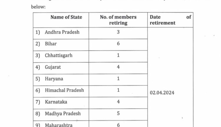 राज्यसभेतील ५० सदस्य २ एप्रिल रोजी निवृत्त झाले असून इतर सहा सदस्य ३ एप्रिल रोजी निवृत्त झाले आहेत, असे निवडणूक आयोगाने सांगितले. आंध्र प्रदेश, बिहार, छत्तीसगड, गुजरात, हरियाणा, हिमाचल प्रदेश, कर्नाटक, मध्य प्रदेश, महाराष्ट्र, तेलंगणा, उत्तर प्रदेश, उत्तराखंड, पश्चिम बंगाल, ओडिशा आणि राजस्थान या राज्यांमधून हे सदस्य निवृत्त होत आहेत.विविध राज्यांतील पक्षीय संख्याबळानुसार या जागांवर सदस्य विजयी होत असतात. आता बिहारमध्ये राजकीय समिकरण बदलल्याने त्याचा भाजपला लाभ होणार आहे.लोकसभा निवडणुकीच्या आधीच या निवडणुकीद्वारे देशातल्या राजकीय सिस्टीमवर आपलेच प्रभुत्व आहे असे वातावरण निर्माण करण्यासाठी भाजपला याचा लाभ उठवता येऊ शकतो असेही भाकीत आहे.