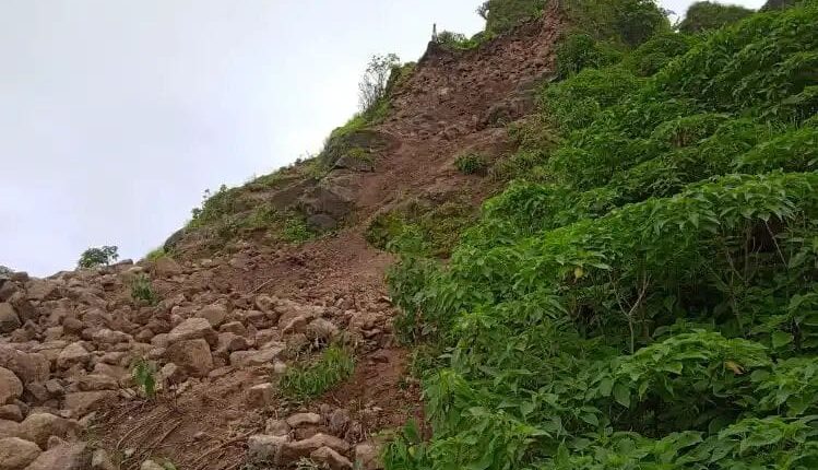 रोहिडेश्वराच्या प्रवेशद्वाराजवळ बुरुजाची पावसामुळे पडझड