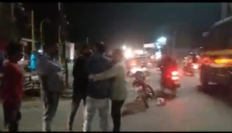 दोन दारुड्यांची भर रस्त्यात एकमेकांना लाथाबुक्क्यांनी मारहाण