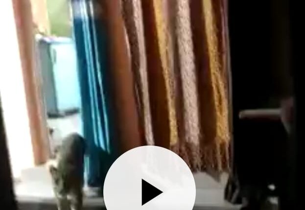 कुत्र्याची शिकार करताना बिबट्या शिरला थेट घरात