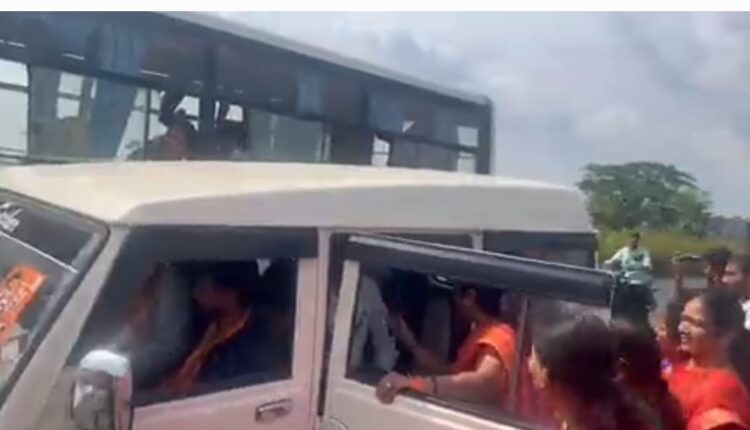 चालत्या वाहनातून शिंदे गटाच्या कार्यकर्त्याचे 'असे' कृत्य, महिलांनी केली धुलाई