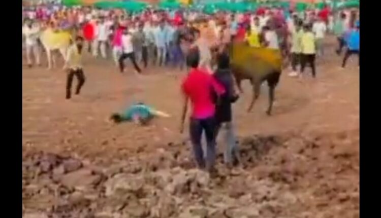 अतिउत्साही तरुणाला बैलाने शिंगावर घेत हवेत भिरकावले